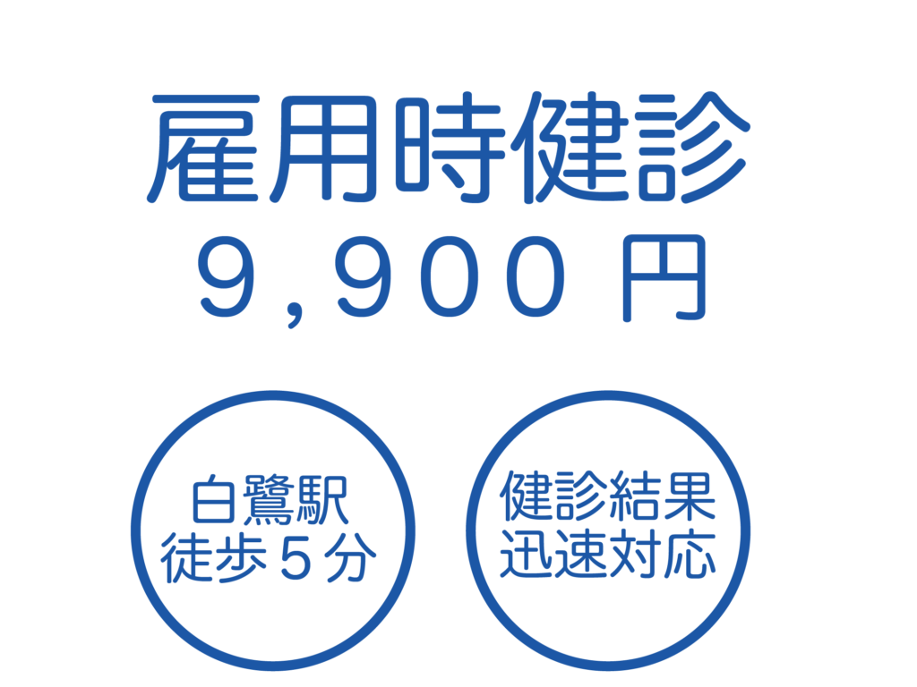 しらさぎフジタクリニックでは、転職・中途採用・内定に伴う雇用時健康診断を実施しています。